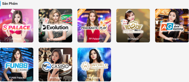 Fun88 cung cấp nhiều trò chơi sòng bài trực tuyến, đáp ứng đầy đủ nhu cầu của người chơi. Dưới đây là những game casino được yêu thích nhất tại Fun88: