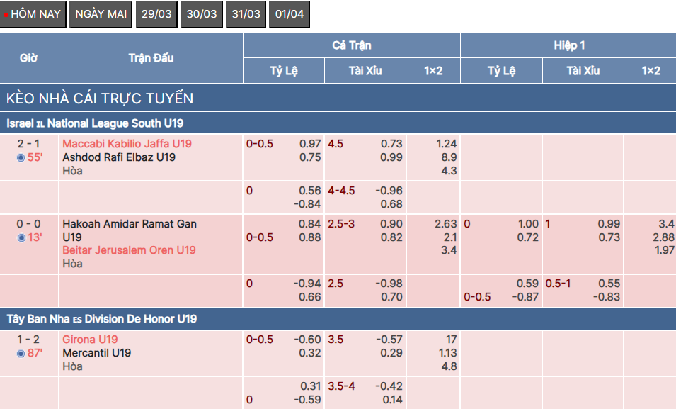 Kèo Hiệp 1 là một loại kèo khác mà người chơi có thể tham gia. Trong kèo này, người chơi sẽ đặt cược vào kết quả của hiệp 1 của trận đấu.